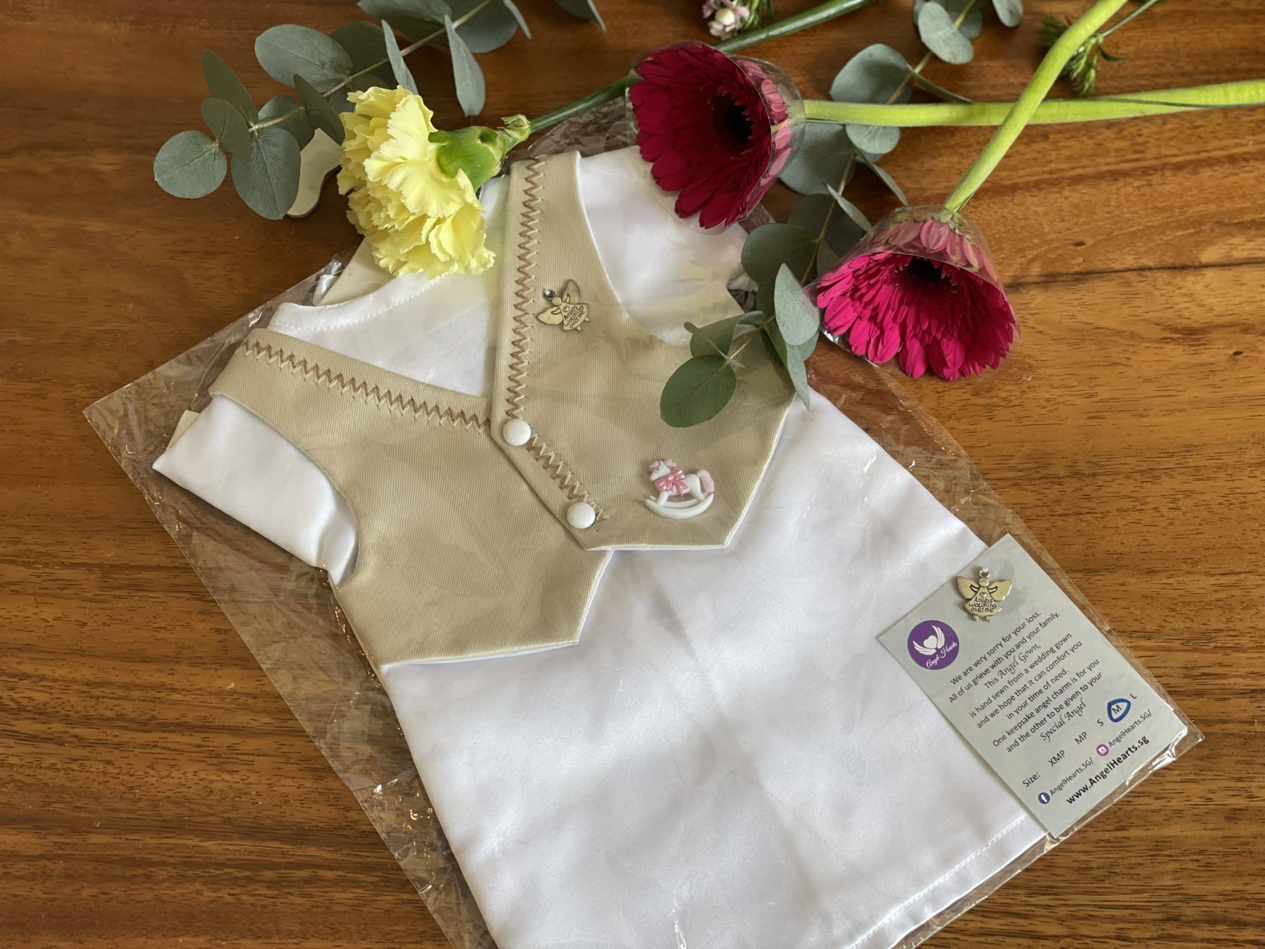 Angel Hearts, a non-profit organisation has a team of genuine volunteers who does up Angel Gowns. Angel Gowns are mini-sized clothes specially curated for your unborn baby. They are deconstructed from wedding gowns in the hopes that linking a happy event to a sad one could help bring some comfort for families who just lost a baby. Major hospitals have Angel Gowns stocks on hand and will don you unborn baby with them before handing it back to you. In the event the hospital does not have them, contact us and we will see if we have stocks on hand to provide these gowns for your precious baby.